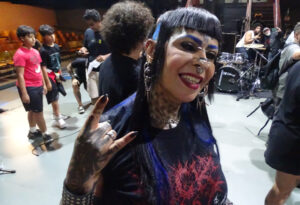 Olha, o show é maravilhoso, é uma banda que eu gosto muito, que eu já sigo há um bom tempo e esse novo álbum deles está sensacional. Olha, o Rock para mim está na veia. Eu cresci ouvindo o ritmo, desde de Rita Lee até Sepultura, assim, o meu forte mesmo é o Punk, talvez por isso tenho esse visual com piercings, alargador, muita tatuagem… Agora estou pensando em pintar a língua de azul – prometeu a rockeira.
